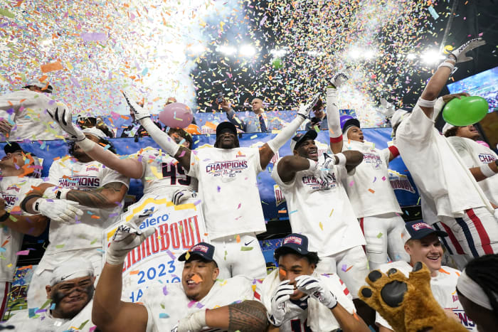 The 2023 game had No. 14 Arizona force six turnovers in a 38-24 comeback victory over No. 12 Oklahoma, scoring 25 straight points to close the game.