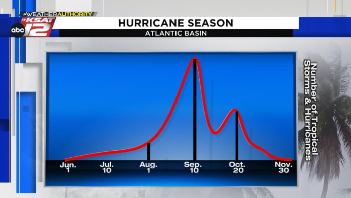 The Atlantic hurricane season starts on June 1, peaks on Sept. 10, and ends on Nov. 30.