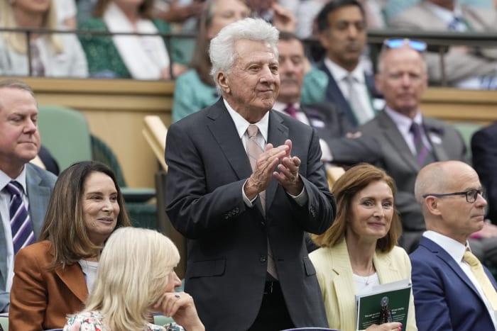 LONDON – Actor Dustin Hoffman and Super Bowl winner Patrick Mahomes were among the celebrities watching Carlos Alcaraz play Frances Tiafoe on Friday in the third round on Centre Court at Wimbledon.