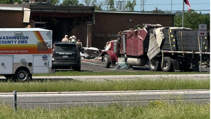 #Breaking – A commercial motor vehicle ran into the Brenham DPS Office, and there are reports of multiple serious injuries.