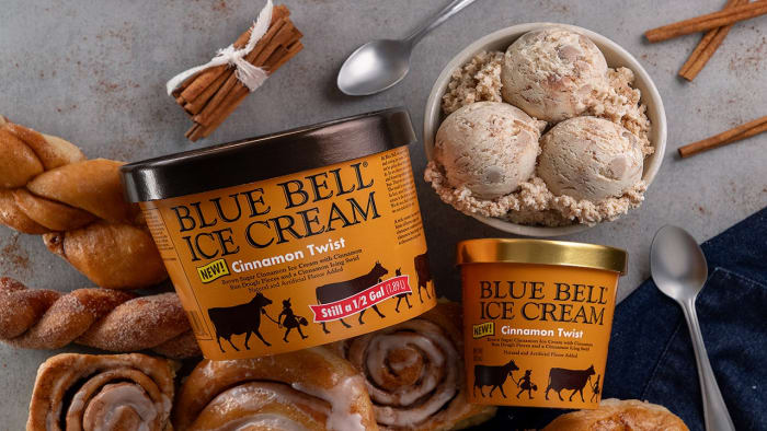 “We have put a twist on a popular pastry by turning it into a great-tasting ice cream,” said Joe Robertson, executive director of advertising and marketing for Blue Bell in a press release. “The perfect cinnamon twist has a soft, almost gooey texture. The cinnamon bun dough pieces in our new Cinnamon Twist Ice Cream capture this perfectly. And the delicious cinnamon icing swirl complements the ice cream and tasty dough pieces. It is a sweet twist our fans will enjoy.”