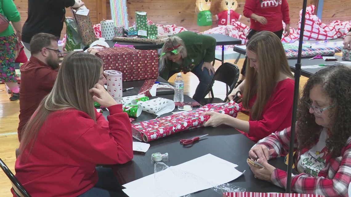 Organizers say demand to volunteer was so high that registration had to be closed once the event reached capacity. Volunteers worked side-by-side in the gym, wrapping gifts and organizing items based on individual wish lists created by the children.