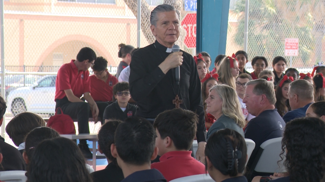 Students attending the kickoff heard from several speakers, including Archbishop Gustavo García-Siller, and KENS 5’s Henry Ramos served as event emcee.