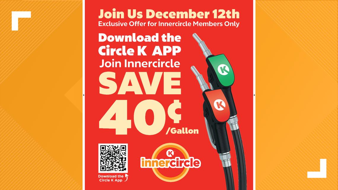 Circle K will offer its reward members 40 cents off per gallon at participating Texas stations on Dec. 12.