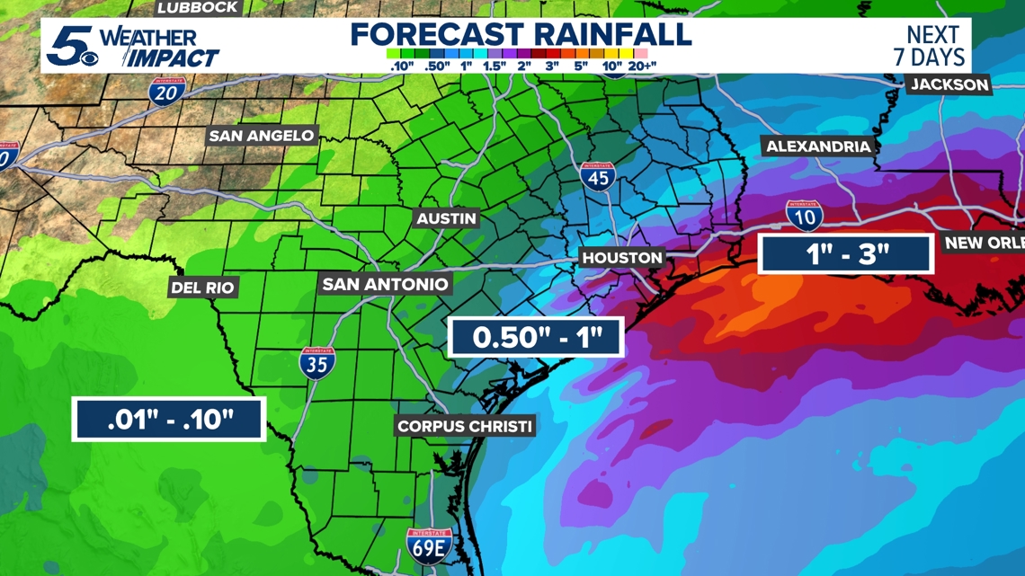 Our region is expected to see only between a tenth of an inch and a quarter of an inch, on the higher side. Again, it’ll mostly be a cold, on-and-off light rain. San Antonio typically receives two inches of rain in an average December, but November was usually dry as the Alamo City received less than half an inch of rain.