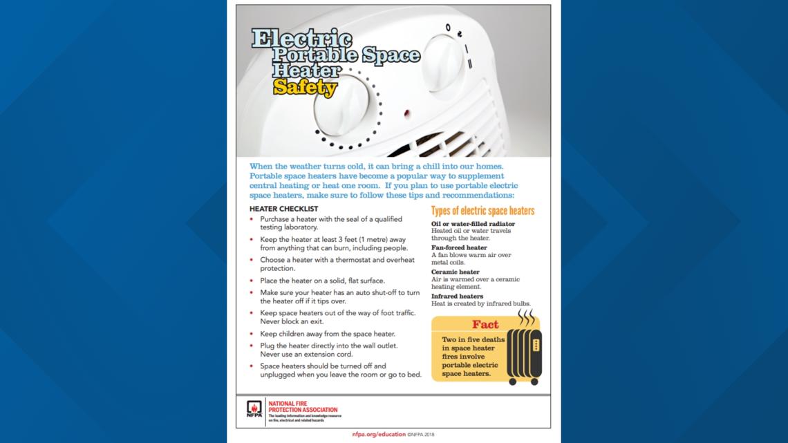 First, space heaters deserve extra attention when being used. Experts say to plug them directly into a wall outlet – never a power strip and keep anything that can burn at least three feet away. And before you head to another room, turn them off.