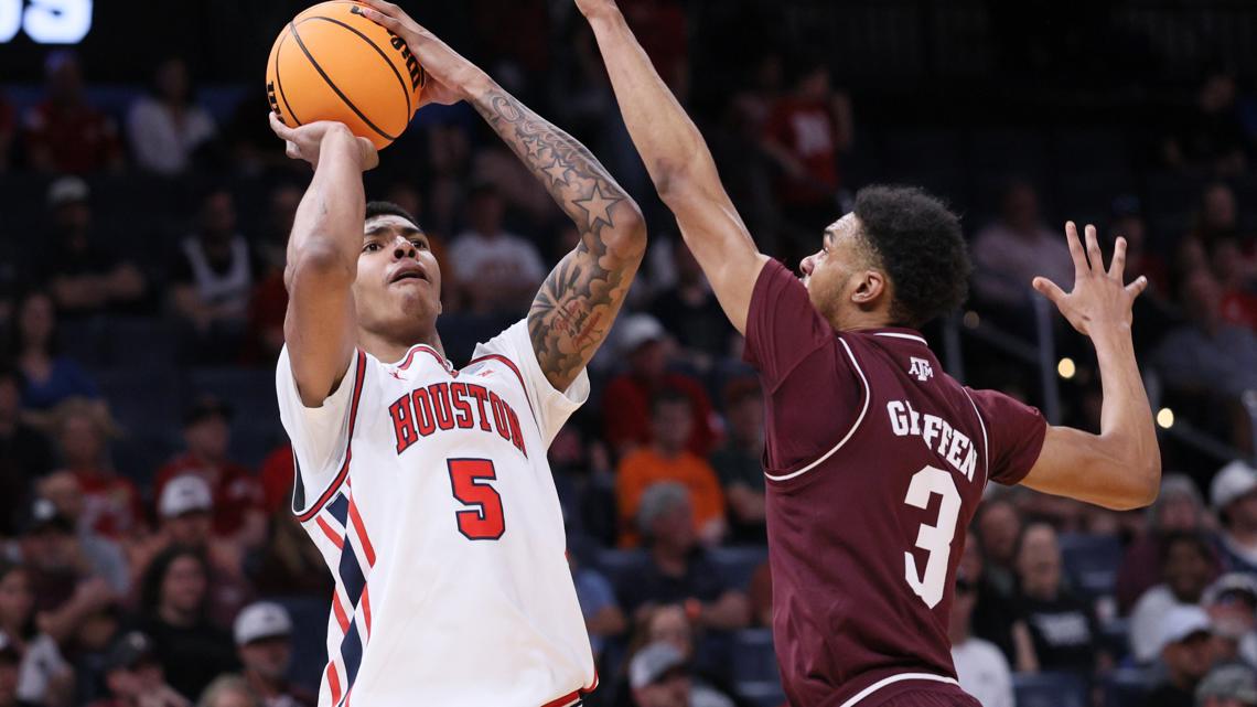 Houston led at the half, 46-28, with Chris Cenac Jr. scoring 10 points, Milos Uzan 9, and Chase McCarty adding 8 off the bench. Houston also used a smothering defense to hold the Aggies to 34% shooting. The Aggies had seven turnovers.