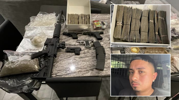 There, they found cash, money-counting machines, five handguns, one rifle and an illegal firearm switch.