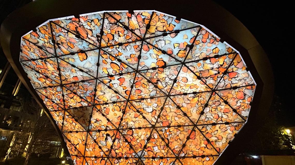 Organizers hope the the pavilion will become a must-see landmark for the Alamo City similar to Chicago’s iconic Bean. During the day. the stained glass reflects the surrounding landscape and by night, LED lights cast a warm glow visible from the hotel’s rooftop terrace and nearby streets. The illumination will shift seasonally and for special celebrations, giving La Mariposa an “evolving presence” in the district, according to organizers.
