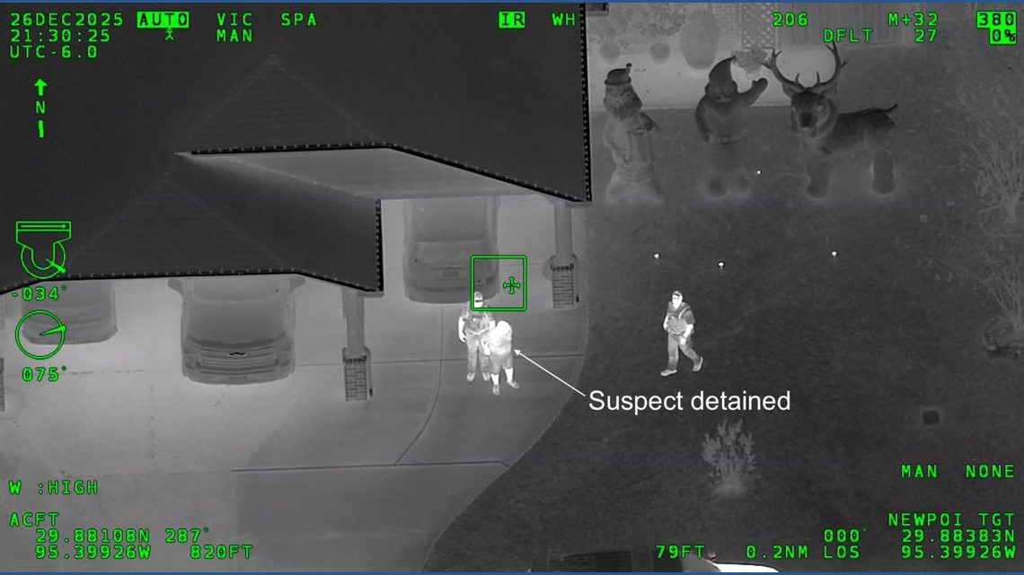 The DPS shared thermal imaging footage from the helicopter showing various stages of the manhunt, including views of the suspect and the surrounding area during the operation.