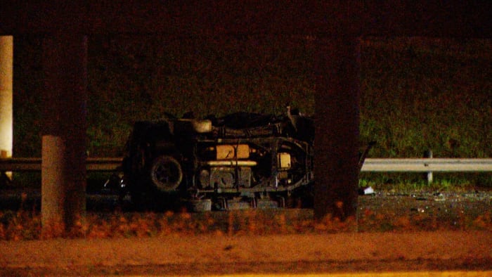 According to SAPD, the driver was heading eastbound on the highway when they lost control, swerved off the main lanes and went into a grassy area. The car then hit a guardrail and rolled over, police said.