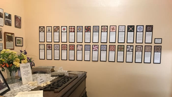 The 29 quilt squares with a description of each enslaved person’s life at the Polley Plantation are on display in the museum’s Polley Room.