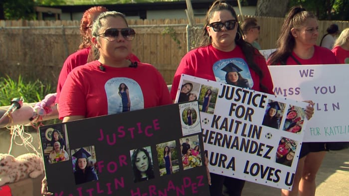 “It ain’t fair that I’m standing right here while they’re with their families right now, we have to do this fight for her to get justice, and they’re at home relaxing,” said Crystal Rodriguez, Kaitlin’s aunt.