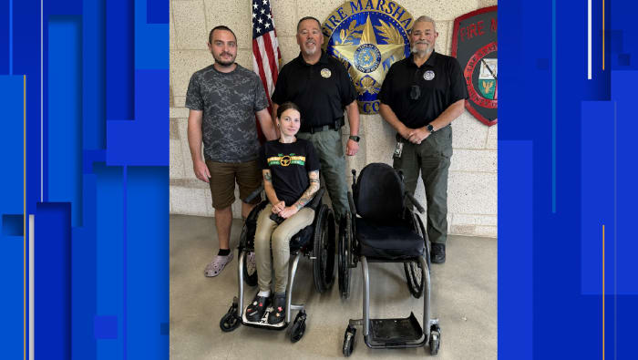 The firefighters contacted the Fire Marshal’s Office because they thought it might be the wheelchair that had been reported stolen.