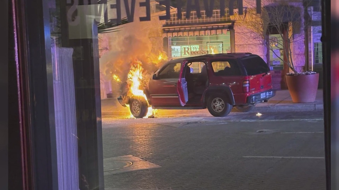 An eyewitness who asked not to be identified said they first spotted flames near a nearby building before realizing the vehicle was on fire.