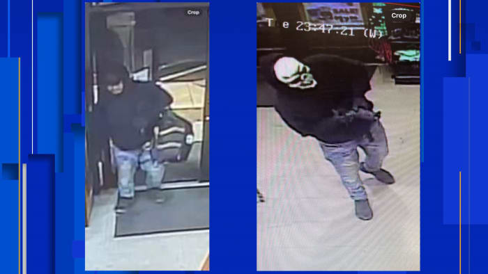 According to police, a man entered the store wearing a dark-colored hoodie or jacket, a cap and blue jeans. The man was also carrying a duffel bag.