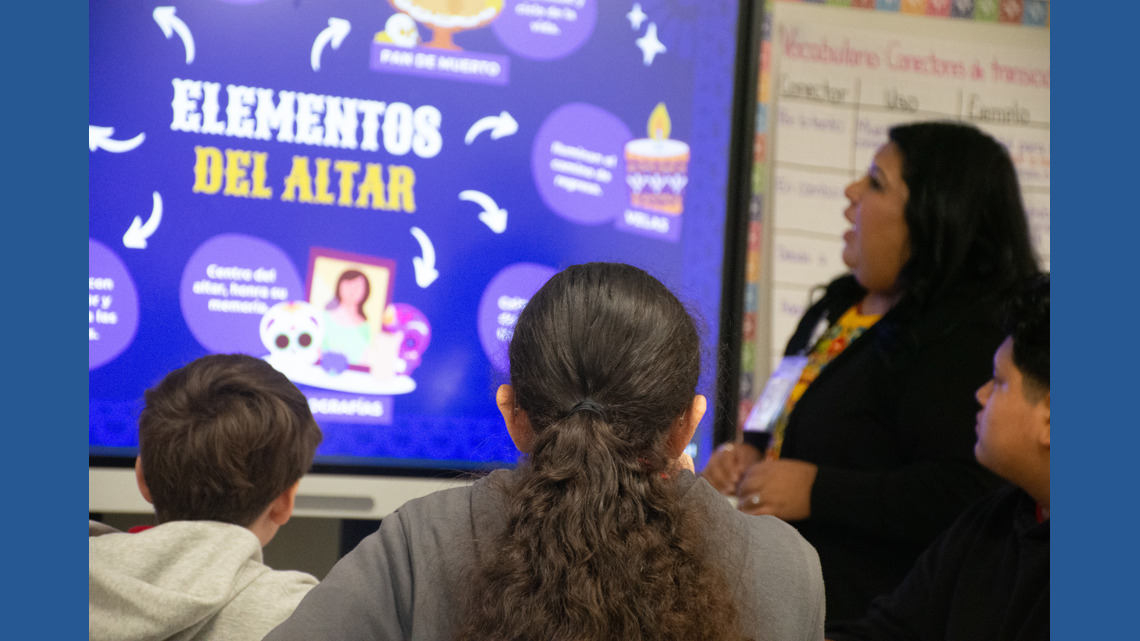 “Ahhhhh.” A wave of recognition washes over the students. This is just one taste of Dia de los Muertos culture they’re experiencing on this Monday at Irving Dual Language Academy, some of them for the first time.