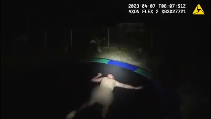 Florida deputies arrested a naked man on Friday morning after they say he broke into two homes, covered himself in oil and hopped into a pool before leaping onto a trampoline.