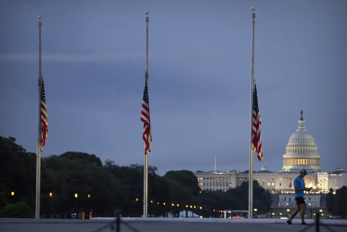 Flag at Capitol at half-staff this morning in honor of National Peace Officers Memorial Day. It’s one of 2 days federal law mandates American flags to be flown at half-staff. The other is Memorial Day. #policeofficerweek 🇺🇸 pic.twitter.com/Jegw8hCNgO