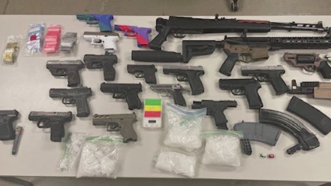 BCSO deputies recovered 17 firearms—including four confirmed stolen—along with ghost guns, glock switches, a rifle suppressor and drug-related paraphernalia.