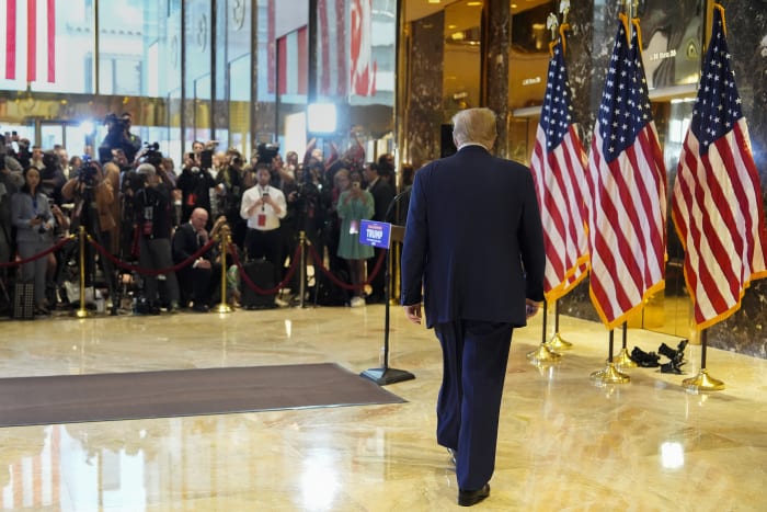 In what was billed as a news conference, the former president hit familiar themes with his anger about the case, criticism of some figures involved and campaign-style attacks against his anticipated opponent, President Joe Biden. Trump walked off after about 40 minutes without taking any questions.