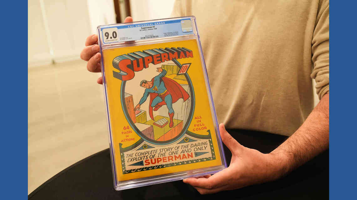 The “Superman No. 1” comic, released in 1939 by Detective Comics Inc., is one of a small number of copies known to be in existence and is in excellent condition. The Man of Steel was the first superhero to enter pop culture, helping boost the copy’s value among collectors, alongside its improbable backstory, Allen said.