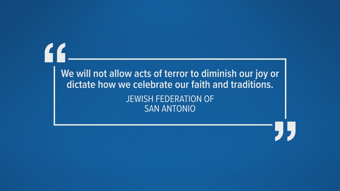 In a statement, the Jewish Federation of San Antonio said, in part, “We will not allow acts of terror to diminish our joy or dictate how we celebrate our faith and traditions.”