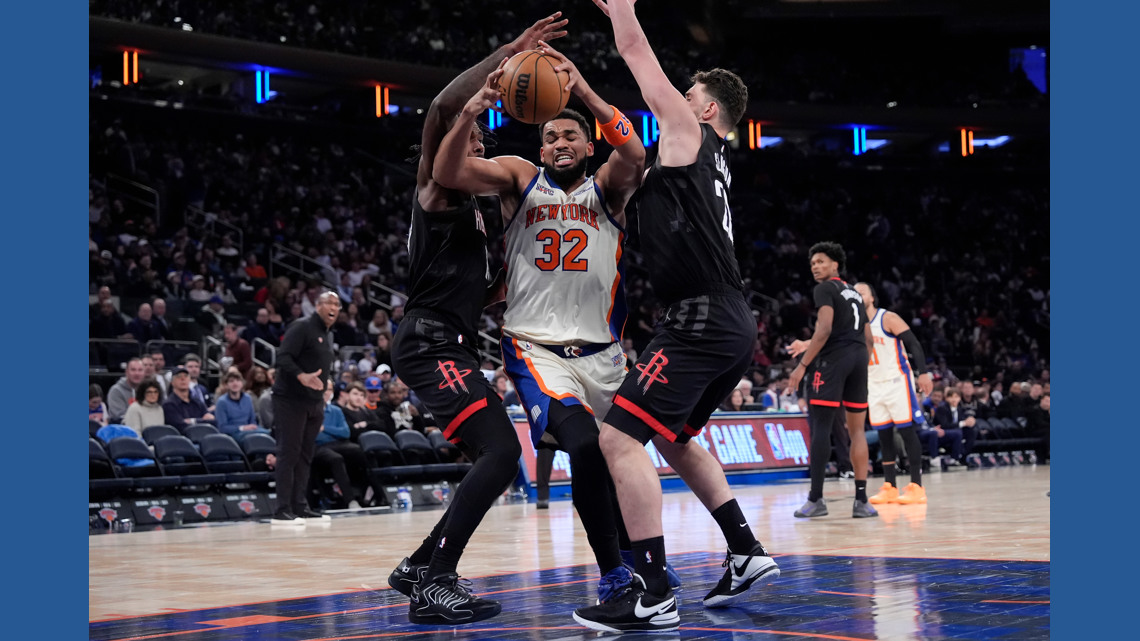 Houston missed eight consecutive shots and turned the ball over two times as the Knicks went on a 14-2 run, capped by Towns’ layup off the glass that cut it to 99-97 with 3:32 left.