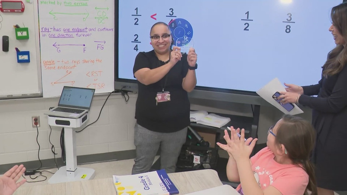 What started as a routine school day quickly turned into a celebration. Ynostrosa believed district leaders were visiting her classroom to take photos. Instead, she was greeted with the award and applause from colleagues and students.
