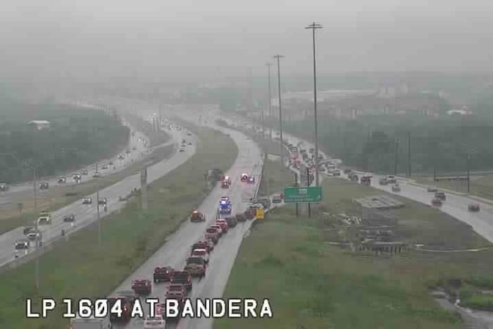 The crash happened on the north to eastbound lanes of Loop 1604, just past Bandera Road.
