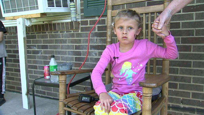A 6-year-old girl, Kinsley White, was grazed by a bullet in the left cheek and was treated at a hospital and released, she and her family said. Her father, Jamie White, who had run to her aid, was shot in the back. He remained hospitalized Thursday with serious wounds, including liver damage, according to Kinsley’s grandfather and neighbor, Carl Hilderbrand. The girl’s mother, Ashley Hilderbrand, was grazed in the elbow. Authorities say Singletary also shot at another man but missed.