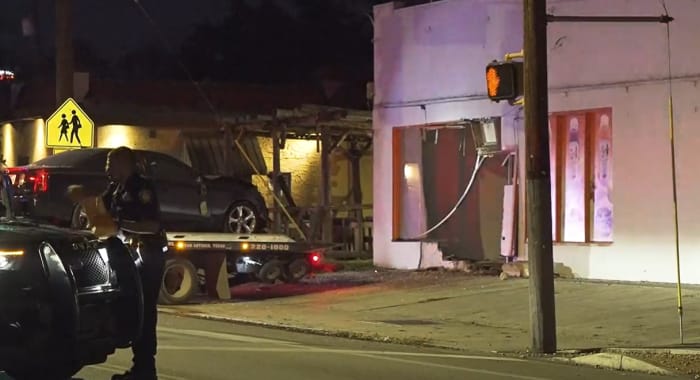SAN ANTONIO – A man was arrested for DWI after he crashed his entire vehicle into a building early Saturday morning.