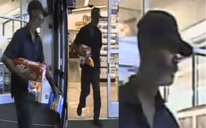 According to police, a man (seen above) entered the store, selected a few items and attempted to conceal them. That’s when, police say, when he was approached by employees he brandished a knife and then began yelling at them.