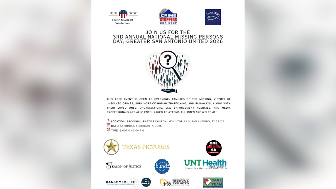 SAN ANTONIO — An event focused on support, awareness and connection for families impacted by missing persons, unsolved cases and related trauma is set to take place next weekend on San Antonio’s southeast side.