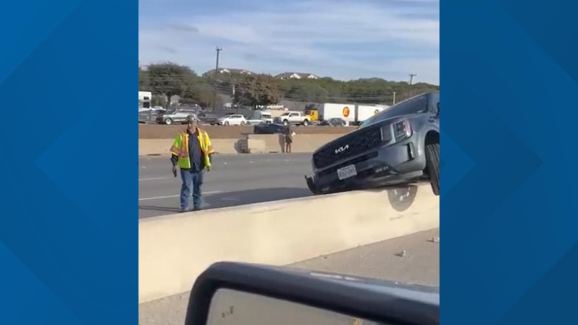 Video obtained by a KENS 5 employee showed one vehicle on top of a roadway barrier, while other cars were heavily damaged.