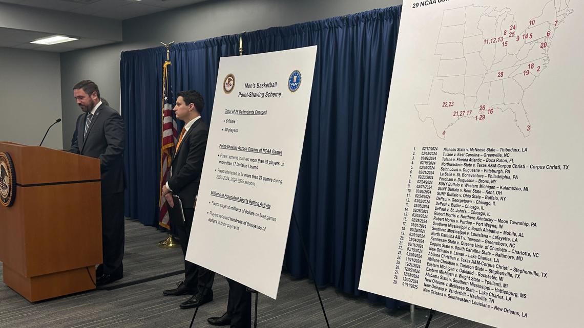 Of the defendants, 15 played basketball for Division I NCAA schools during 2024-25 season, prosecutors say. Five others last played in the NCAA in the 2023-24 season while another, former NBA player Antonio Blakeney, played in the Chinese Basketball Association in the 2022-23 season.