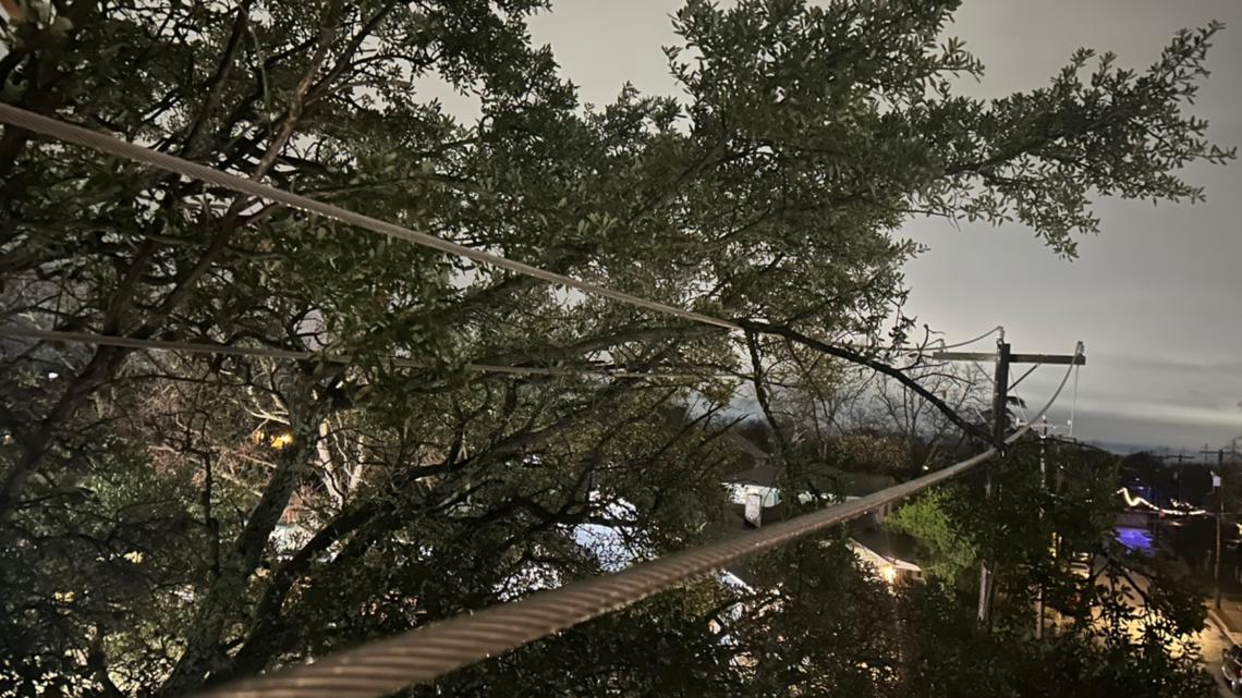 CPS Energy reports crews are working through the night to restore power to neighborhoods as trees knock down power lines.