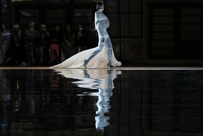 Prabal Gurung was thinking deep this season. He installed a mirrored square runway reflecting an opulent blue light display at the main branch of the New York Public Library for a fashion week show Friday exploring the Buddhist concept of “anichya,” or impermanence.