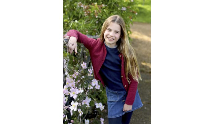 LONDON – Prince William and his wife, Kate, marked the 9th birthday of their daughter Charlotte on Thursday by posting a picture of her smiling for the camera as she posed near a plant with pink flowers.