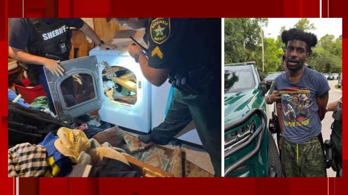 ESCAMBIA COUNTY, Florida – Deputies in Florida discovered more than just clothes in a dryer after finding a wanted suspect in the “tumble-ready hideout” while serving a warrant last week.