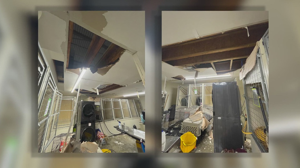 The SA Pets Alive Medical Care & Adoption Center’s parvo ward facility sustained the most damage. The area’s ceiling has caved in.