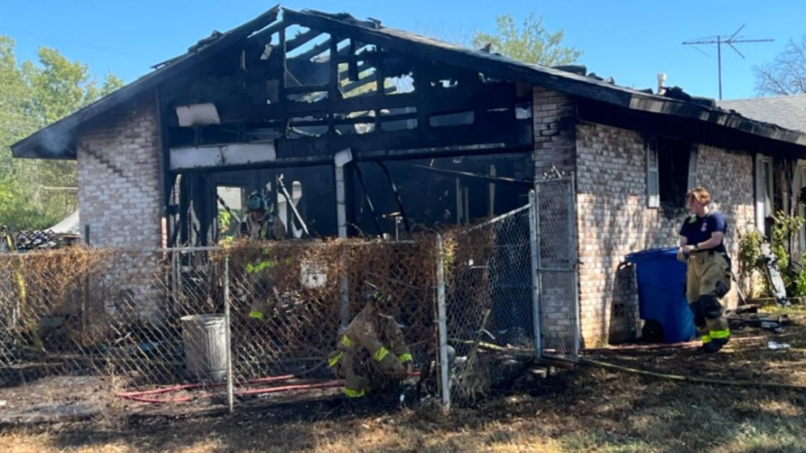 Crews responded around 11:21 a.m. to a reported house fire in the 4000 block of Judivan. Fire officials said the blaze appeared to have started in the garage before spreading into the attic.