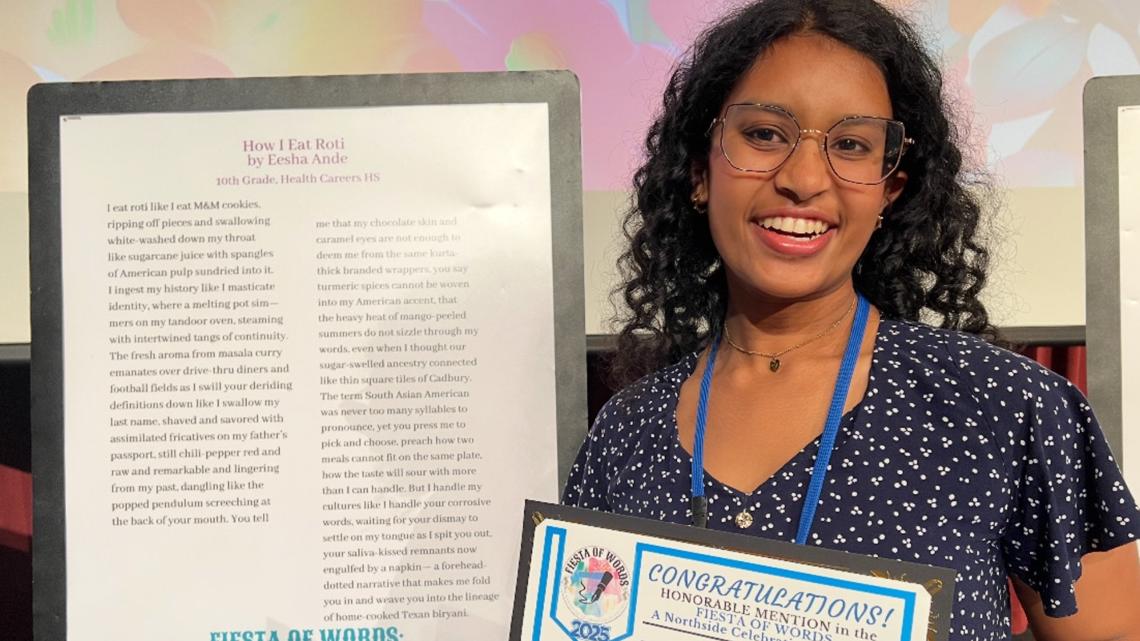 SAN ANTONIO — At an age when most artists are just beginning to find their voice, eleventh grade poet Eesha Ande is already being recognized on a national stage for poetry that centers on marginalized voices.