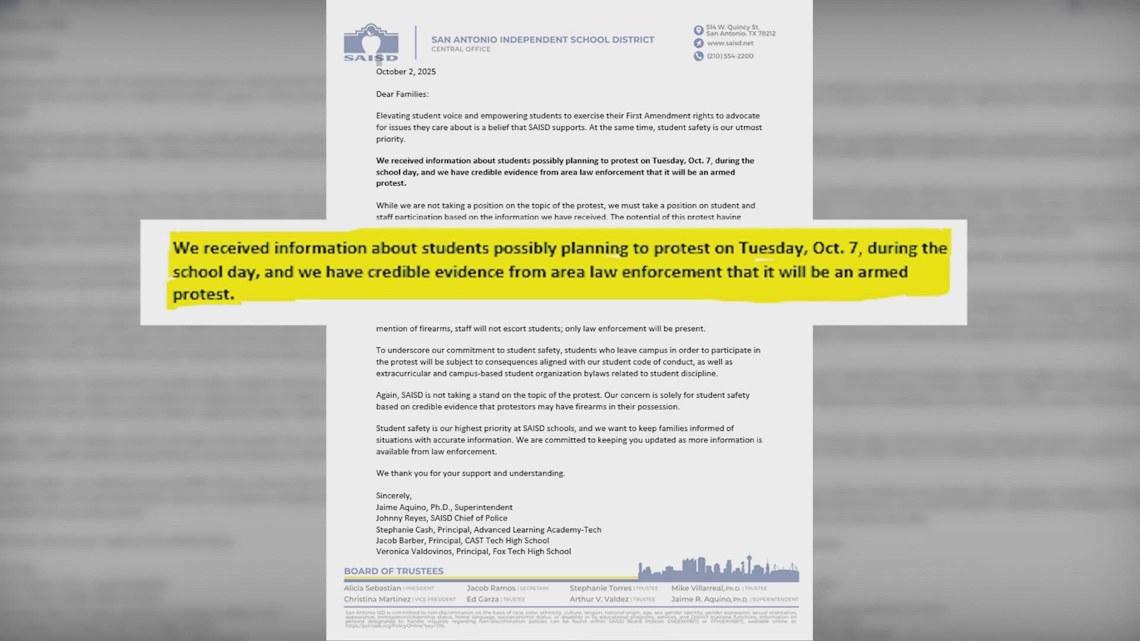 According to the letter, district officials are not aware of who is hosting the potential protest, but based on information SAISD gathered from law enforcement, the organizers have impersonated a school organization.