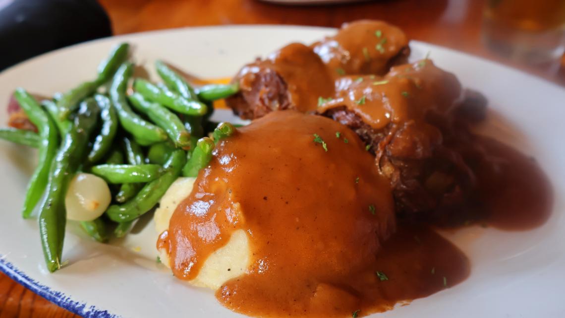 And their pot roast marinated with beer and wine, the rich and creamy fried deviled eggs and their mushrooms – an Alamo City favorite.