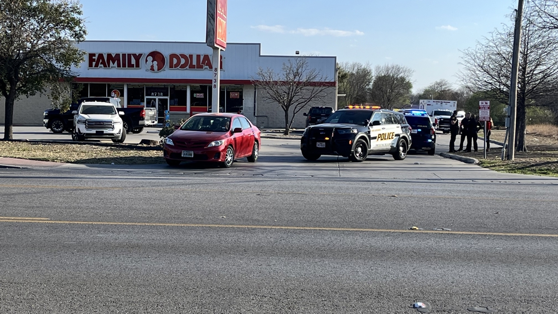 SAPD says members of the Texas Anti-Gang unit tried to make a pedestrian stop on two men in their 20s that were walking near the Family Dollar in the 8700 block of Marbach Road around 4 p.m.
