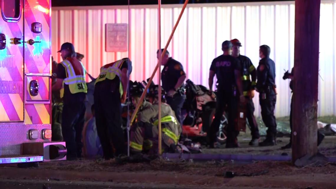 Authorities say at least one person was taken to a hospital with life-threatening injuries.