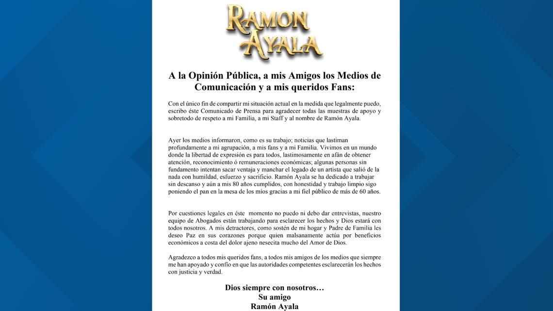 However, in a recent Facebook post, Ayala shared a written statement addressed to the public, media and fans, saying that due to legal reasons he cannot give interviews at this time and that his legal team is working to clarify the facts.