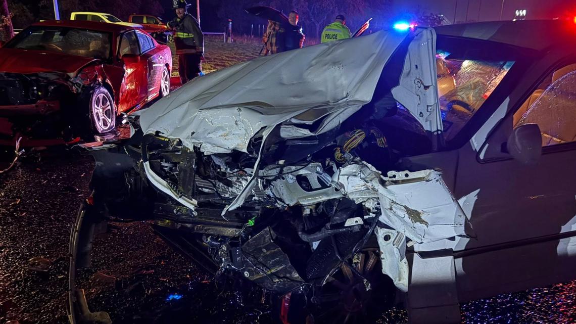 Responders say two vehicles collided head-on, prompting a large emergency response.
