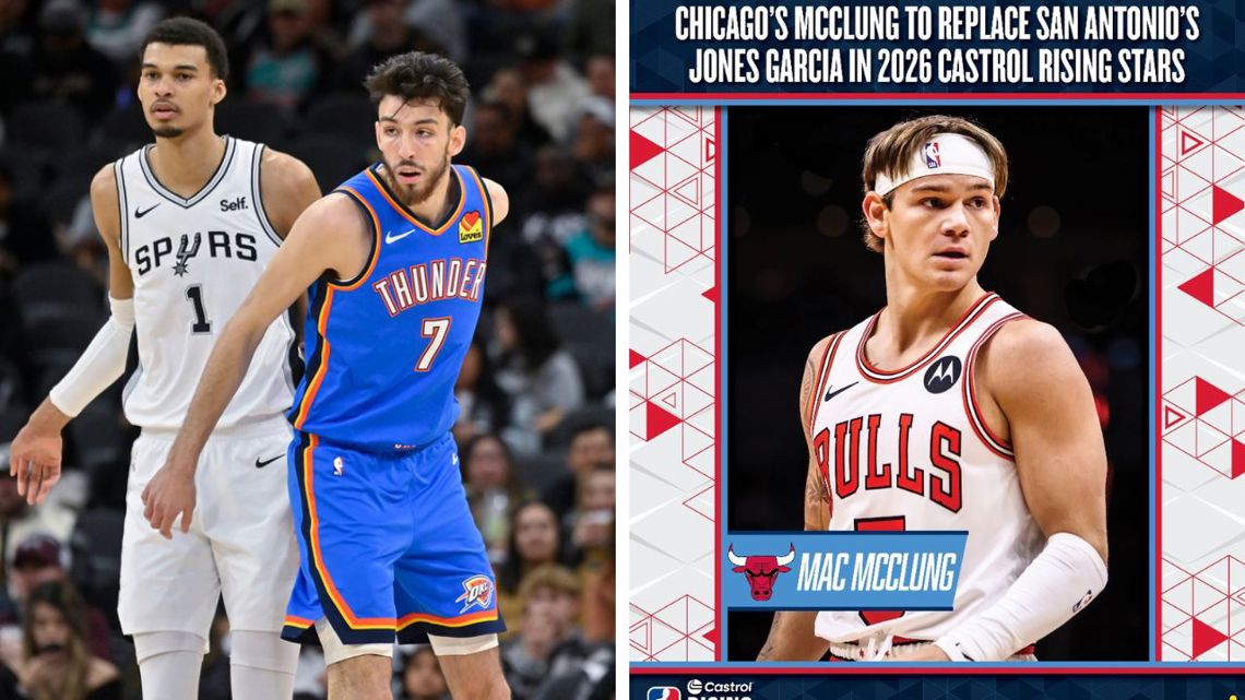 The NBA announced that Chicago Bulls guard Mac McClung will replace injured Spurs guard David Jones Garcia on Team Austin in the 2026 Castrol Rising Stars. Jones Garcia is unable to participate because of a right ankle injury.